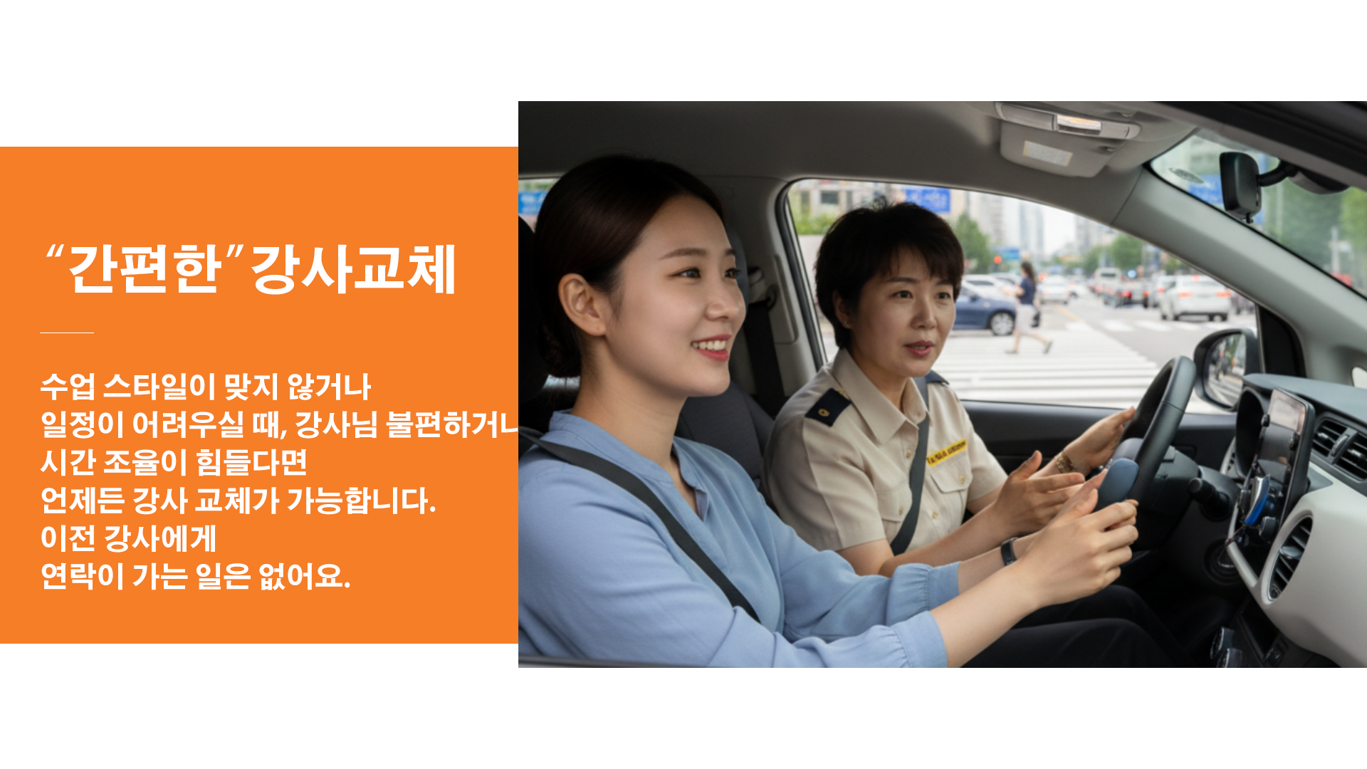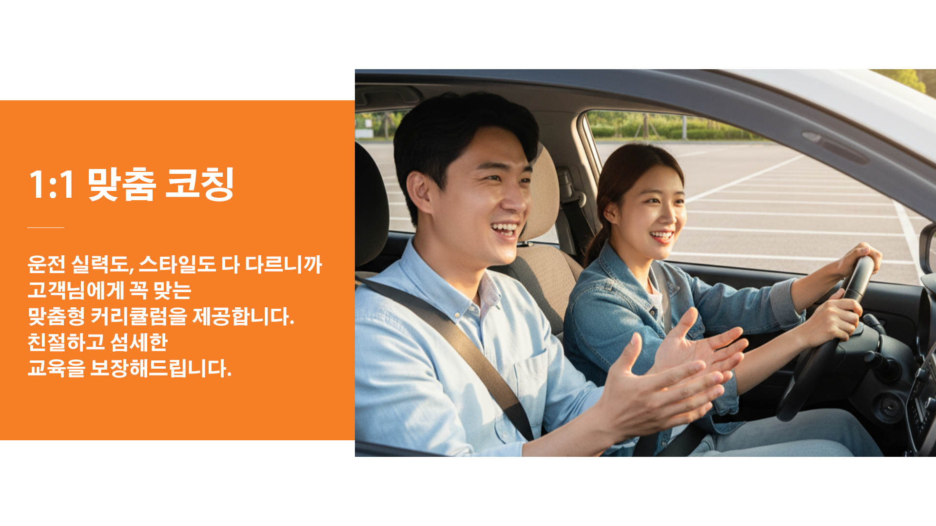 A4. 네. 보조 브레이크가 장착된 연수 차량 또는 개인 차량 중 선택할 수 있으며, 개인 차량은 실전 적응에 효과적입니다.